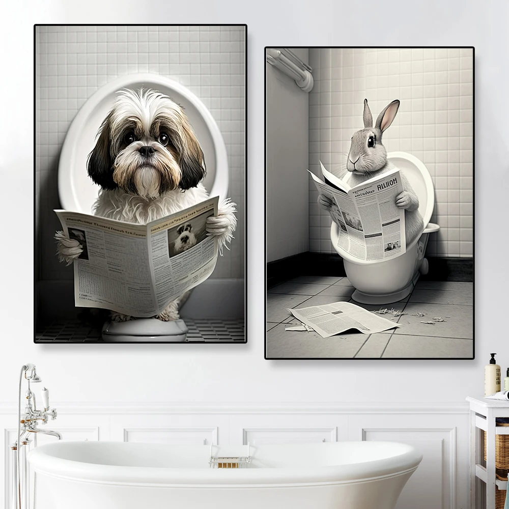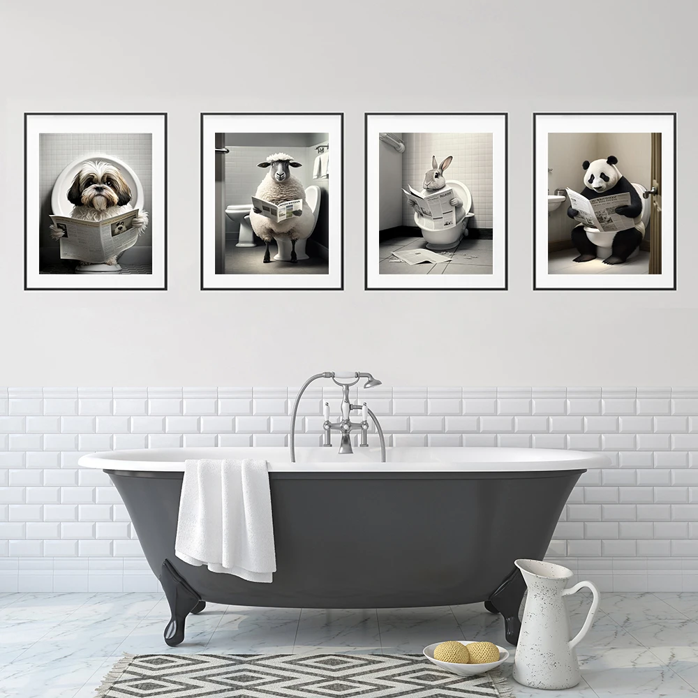 Raccoon Sitting On Toilet,Reading Newspaper Bathroom Wall Art Poster
